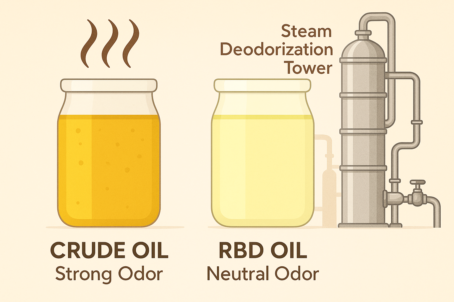 During deodorization, natural volatile compounds are removed, giving RBD coconut oil its signature neutral odor profile.