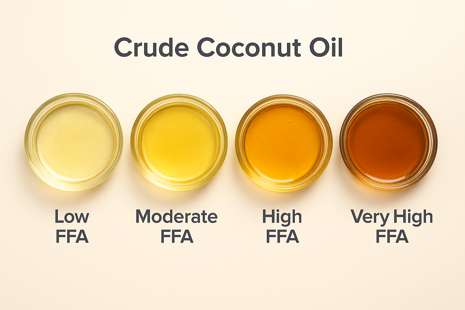 Learn about common impurities in crude coconut oil—moisture, sediments, FFA, odor compounds—and how manufacturers remove them using filtration, settling, and refining.