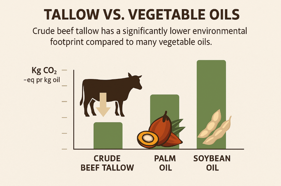 Studies show crude tallow can generate up to 70% fewer CO₂ emissions than palm oil used for industrial applications.